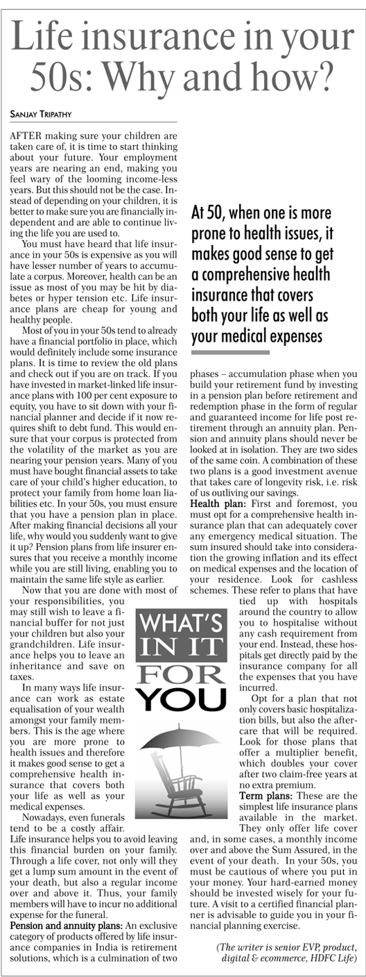 Before planning to invest, look for a senior citizen health insurance policy. Medical expenses tend to increase as you get older. It is crucial to cover yourself adequately for any medical emergencies. Senior citizen insurance plans usually have ’Co-pay’ clause and sub-limits. Co pay clause means where the insurer has to bear some part of the initial expenses. Insurer chips in only after a certain level of medical bill has been reached. You must understand the co-payment and sub limits thoroughly before buying a policy.